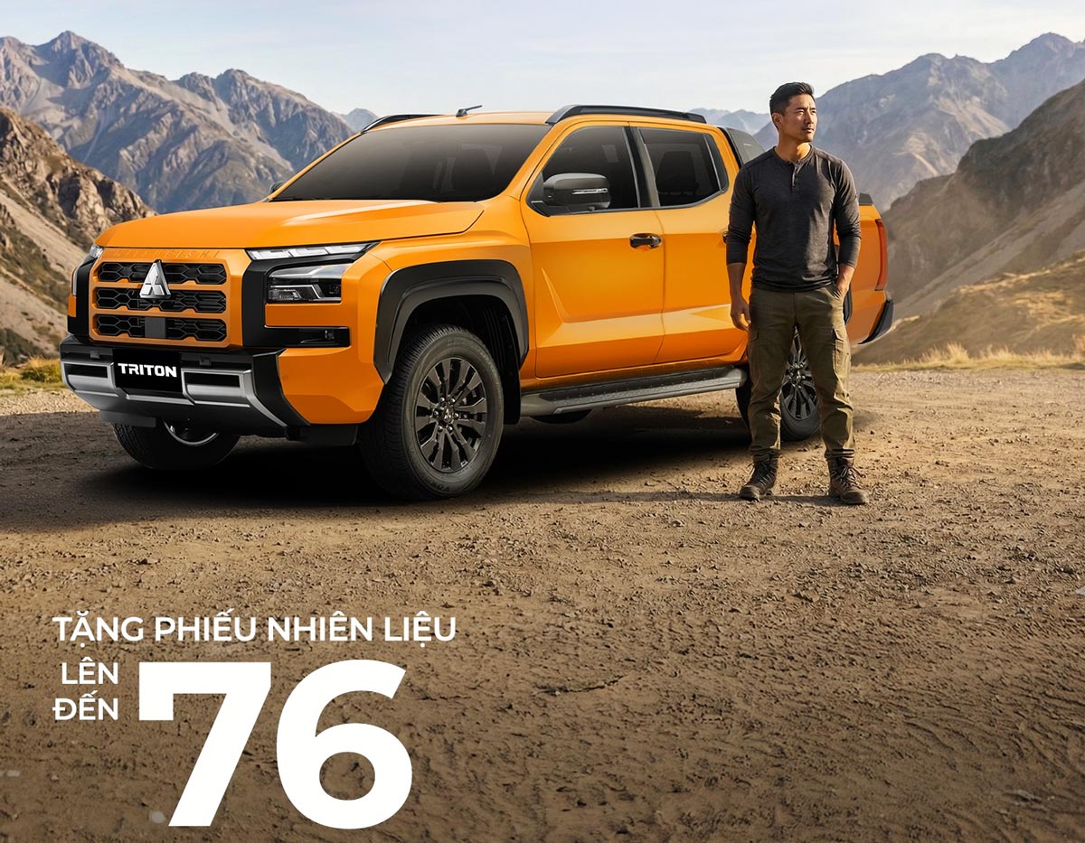 All-New Triton, mẫu bán tải thế hệ mới với khả năng off-road vượt trội và khoang cabin tiện nghi như xe du lịch, được áp dụng ưu đãi phiếu nhiên liệu giá trị cao, đặc biệt hấp dẫn với phiên bản 4WD AT Athlete sản xuất 2025: